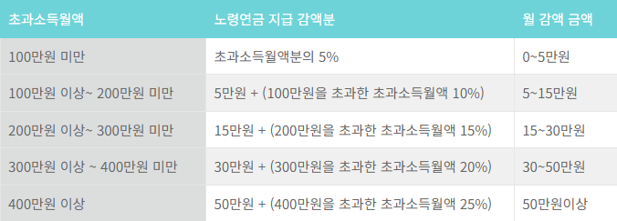 ●국민연금 수령 나이조건을 충족하지만 소득이 있을 시에는 연금액의 100%를 받을 수가 없습니다.
