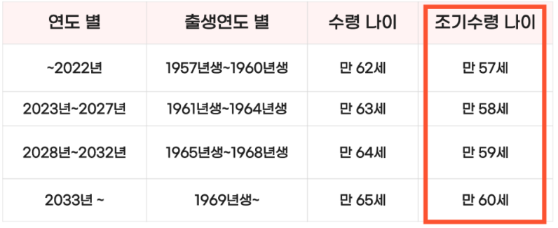 - 국민연금 조기수령 나이