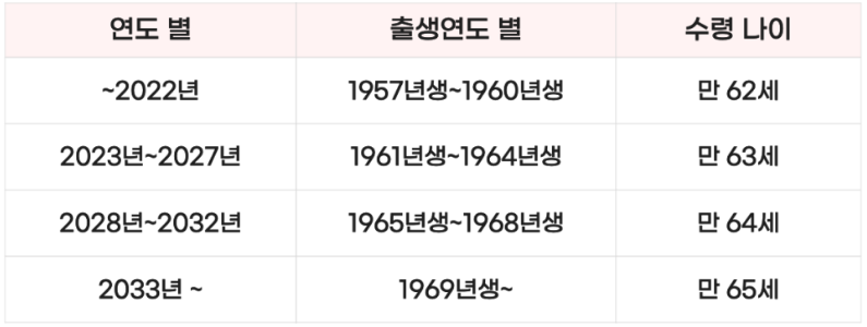 - 국민연금 출생연도별 수령나이