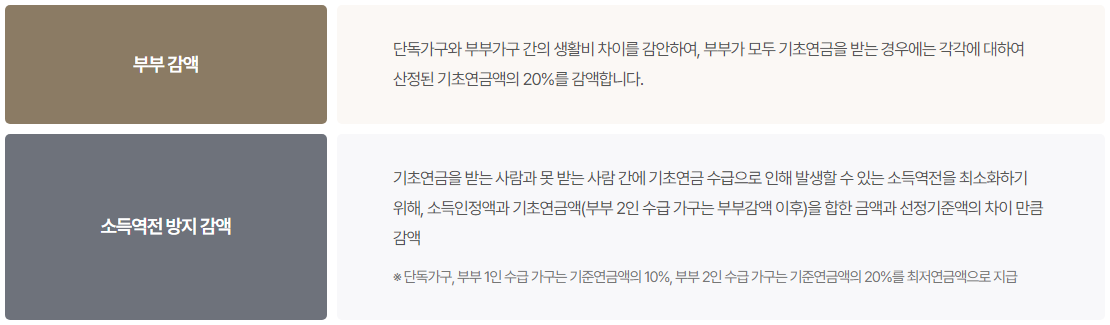 다만, 소득 수준이 상대적으로 높아 소득역전방지 감액이 적용되거나, 부부 두 분 모두 기초연금을 받으실 경우에 감액될 수 있습니다.