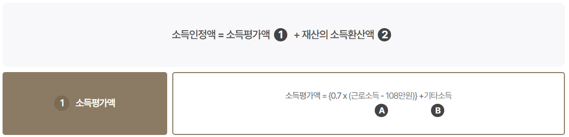소득인정액은 다음과 같은 방법으로 산정됩니다.