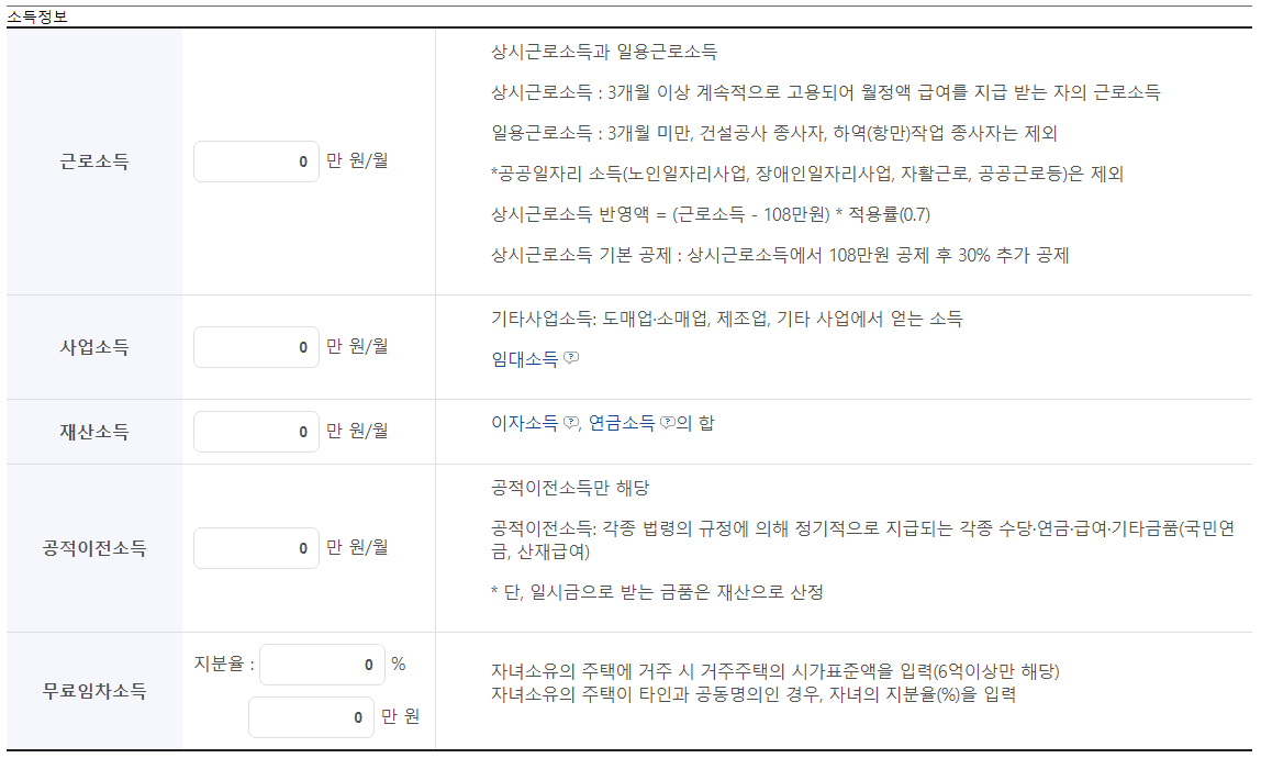 * 근로소득 공제: 1인당 월 108만 원 공제 후 30% 추가 공제)