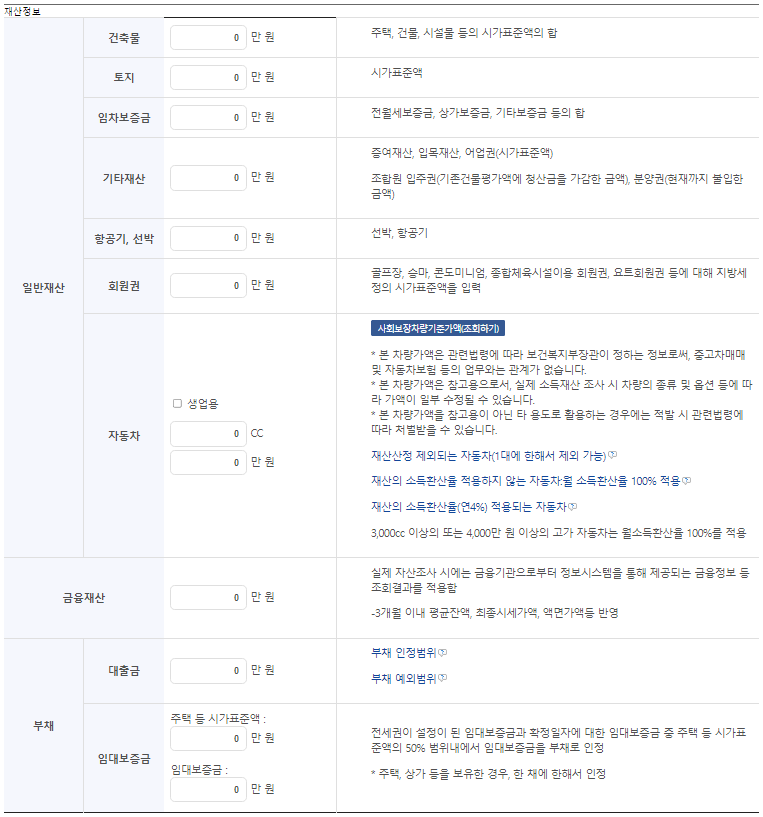 ※ 재산의 소득환산 시 금융재산을 제외한 일반재산 총액에서 기본재산액을 차감하고, 금융재산은 금융재산의 총액에서 금융재산기본재산액을 차감