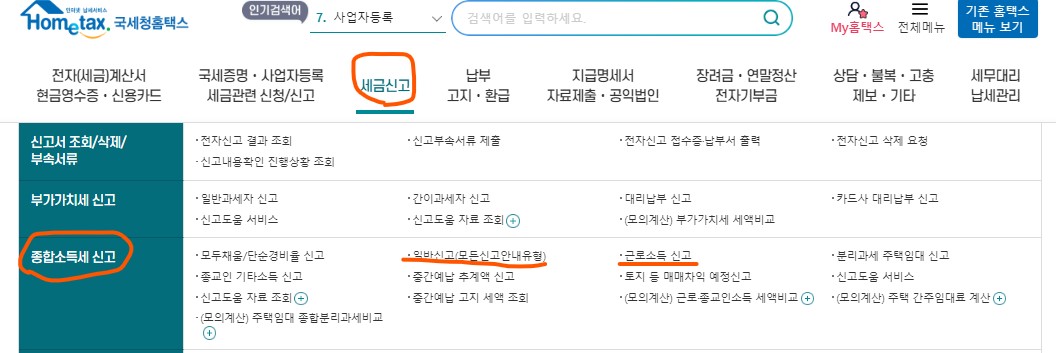 사업자인 경우 : 일반신고(모든 신고안 내 유형)