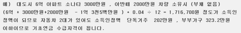 1) 기초연금 자동차 고급자동차 소득환산 계산방법