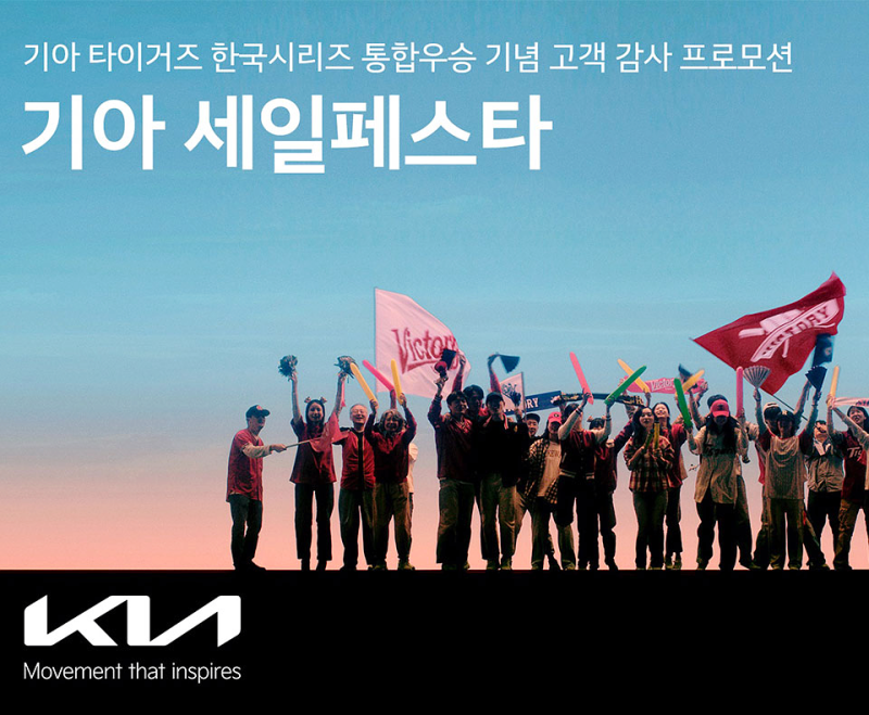 KIA타이거즈의 12번째 한국시리즈 우승을 기념해 모기업 기아가 '세일 페스타'를 진행합니다. 기아는 오는 30일까지 8개 차종 5천 대를 대상으로 최고 12%의 할인 혜택을 선착순으로 제공한다고 1일 밝혔습니다. 할인율은 봉고 Ⅲ EV(12%), 봉고 Ⅲ LPG 터보(10%), 더 2024 니로 EV(9%), 더 뉴 K5, 더 2024 K8 하이브리드, 더 뉴 EV6(이상 7%), 더 2024 K9, 더 2024 니로 하이브리드(이상 3%) 등입니다. 차종별 수량이 모두 소진되면 조기 마감됩니다. 전국 기아 지점, 대리점, 드라이빙센터를 방문한 고객을 대상으로 다양한 경품도 증정합니다. 이벤트 경품은 더 2025 EV9(1명), 더 뉴 EV6(1명), 더 기아 EV3(1명), 기아 타이거즈 24 어센틱 홈 유니폼(50명) 등입니다. 이벤트 참여 고객 전원에게는 메가커피 기프티콘을 증정하고, 참여 고객 중 3천 명에겐 계약금 지원 쿠폰이 지급됩니다. 앞서 KIA 타이거즈가 프로야구 정상에 오르면서 할인율이 얼마나 될지 관심이 쏠렸습니다.