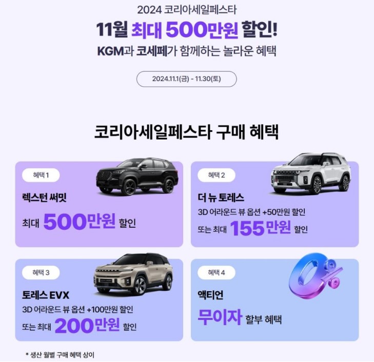 2024 코리아 세일 페스타 자동차에 대한 정보는 여기까지입니다. 소비자 여러분의 많은 관심과 참여를 바랍니다!
